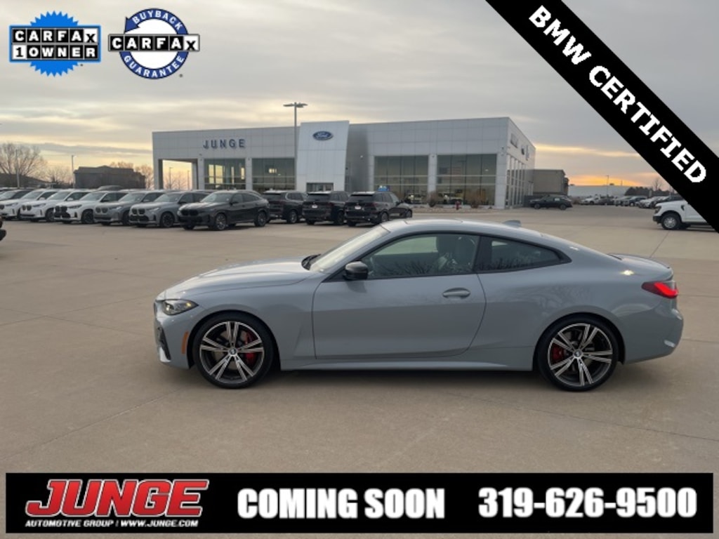 430i xDrive AWD 8-Speed Automatic Sport **ONE OWNER**, **NAVIGATION/GPS**, *SUNROOF/MOONROOF*, **LEATHER**, **HEATED SEATS**, *NEW ARRIVAL*, **LOW MILES**, **LOCAL TRADE**, **CERTIFIED**, **AWD**, **WON'T LAST LONG!**, **ACCIDENT FREE CARFAX**, BMW Certified Pre-Owned Certified, 10 Speakers, 4-Wheel Disc Brakes, ABS brakes, Aerodynamic Kit, Air Conditioning, Alloy wheels, AM/FM Radio, AM/FM radio: SiriusXM, Apple CarPlay & Android Auto Compatibility, Auto High-beam Headlights, Auto-dimming door mirrors, Auto-dimming Rear-View mirror, Automatic temperature control, Black Mirror Caps, BMW Assist eCall, BMW TeleServices, Brake assist, Bumpers: body-color, Comfort Access Keyless Entry, Compass, Connected Package Pro, ConnectedDrive Services, Delay-off headlights, Driver door bin, Driver Lumbar Support, Driver vanity mirror, Dual front impact airbags, Dual front side impact airbags, Electronic Stability Control, Emergency communication system: BMW Assist eCall, Enhanced USB & Bluetooth w/Smartphone Integration, Extended Shadowline Trim, Exterior Parking Camera Rear, Four wheel independent suspension, Front anti-roll bar, Front Bucket Seats, Front Center Armrest, Front dual zone A/C, Front reading lights, Fully automatic headlights, Garage door transmitter, Genuine wood console insert, Genuine wood dashboard insert, harman/kardon Surround Sound System, Heated door mirrors, Heated Front Seats, Heated Steering Wheel, Hi-Fi Sound System, Illuminated entry, Knee airbag, LED Fog Lights, Live Cockpit Pro w/Navi, Low tire pressure warning, M Shadowline Lights, M Sport Brakes w/Red Calipers, M Sport Package, M Sport Package (337), M Sport Package Pro, M Sport Suspension, M Steering Wheel, Memory seat, Navigation, Navigation System, Occupant sensing airbag, Outside temperature display, Overhead airbag, Overhead console, Panic alarm, Passenger door bin, Passenger vanity mirror, Perforated SensaTec Upholstery, Power door mirrors, Power driver seat, Power Front Seats, Power moonroof, Power passenger seat, Power steering, Power windows, Premium Package, Radio data system, Rain sensing wipers, Rear air conditioning, Rear anti-roll bar, Rear reading lights, Rear seat center armrest, Rear Spoiler, Rear window defroster, Remote Engine Start, Remote keyless entry, Security system, SensaTec Dashboard, Shadowline Package, SiriusXM Satellite Radio, Speed control, Speed-sensing steering, Speed-Sensitive Wipers, Split folding rear seat, Sport Seats, Sport steering wheel, Steering wheel mounted audio controls, Tachometer, Telescoping steering wheel, Tilt steering wheel, Traction control, Trip computer, Turn signal indicator mirrors, Variable Sport Steering, Variably intermittent wipers, Wheels: 19" x 8" M Double-Spoke Bicolor, Wireless Charging, Without Lines Designation Outside, 10 Speakers, 4-Wheel Disc Brakes, ABS brakes, Aerodynamic Kit, Air Conditioning, Alloy wheels, AM/FM Radio, AM/FM radio: SiriusXM, Apple CarPlay & Android Auto Compatibility, Auto High-beam Headlights, Auto-dimming door mirrors, Auto-dimming Rear-View mirror, Automatic temperature control, Black Mirror Caps, BMW Assist eCall, BMW TeleServices, Brake assist, Bumpers: body-color, Comfort Access Keyless Entry, Compass, Connected Package Pro, ConnectedDrive Services, Delay-off headlights, Driver door bin, Driver Lumbar Support, Driver vanity mirror, Dual front impact airbags, Dual front side impact airbags, Electronic Stability Control, Emergency communication system: BMW Assist eCall, Enhanced USB & Bluetooth w/Smartphone Integration, Extended Shadowline Trim, Exterior Parking Camera Rear, Four wheel independent suspension, Front anti-roll bar, Front Bucket Seats, Front Center Armrest, Front dual zone A/C, Front reading lights, Fully automatic headlights, Garage door transmitter, Genuine wood console insert, Genuine wood dashboard insert, harman/kardon Surround Sound System, Heated door mirrors, Heated Front Seats, Heated St
